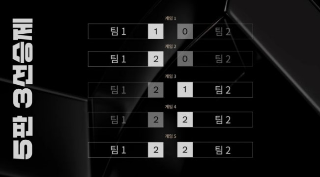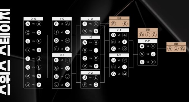 총 5라운드로 구성되며, 3승을 먼저 거둔 팀은 녹아웃 스테이지로 즉시 진출합니다.