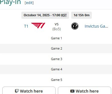 | 플레이인 스테이지 | 10월 14일 | T1 vs IG, 단일 시리즈 |